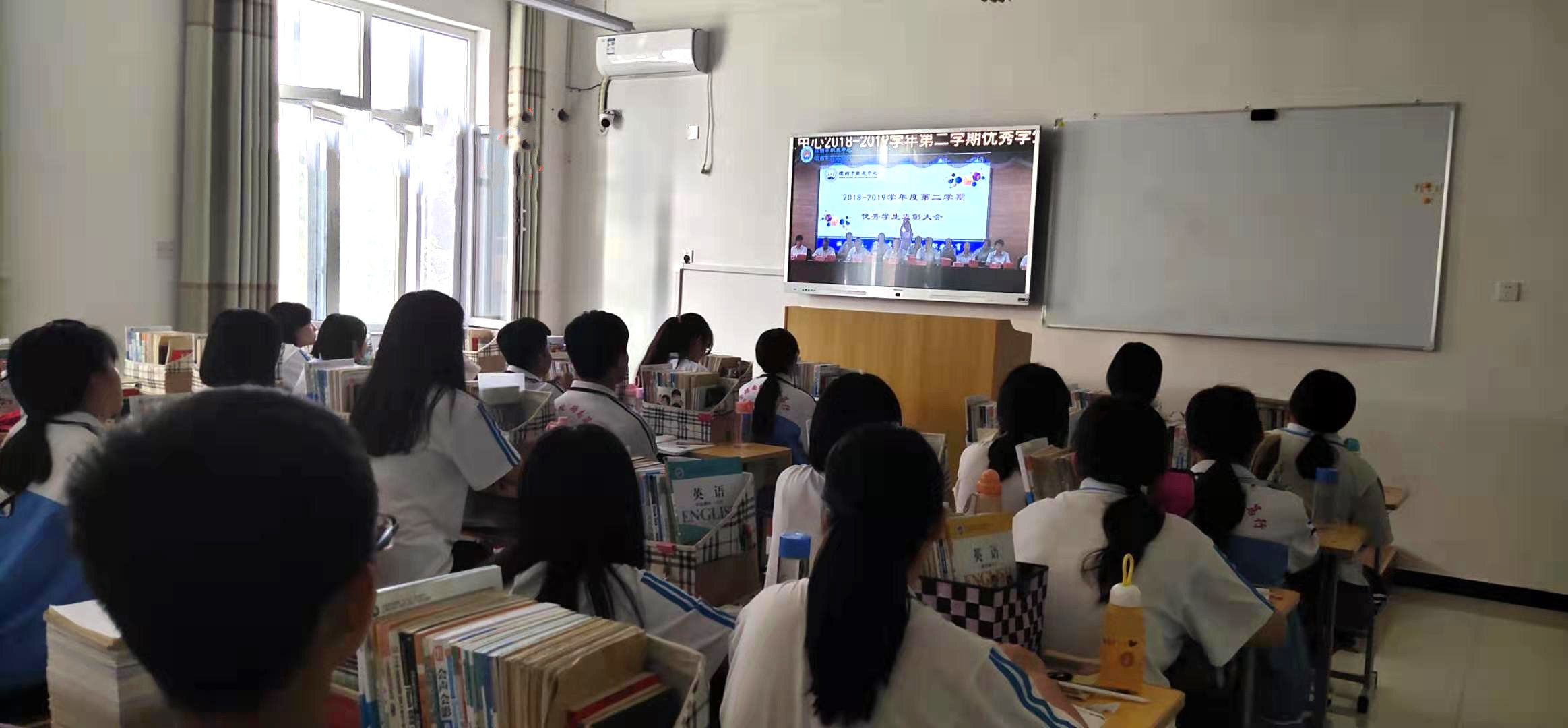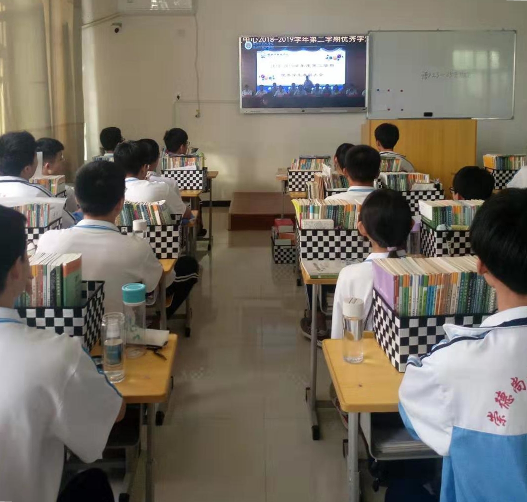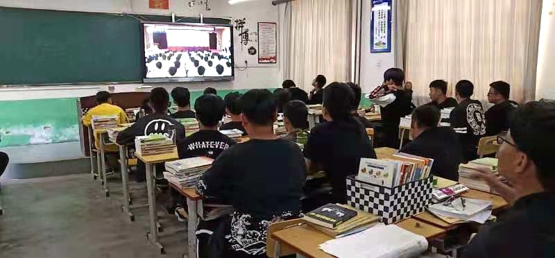 各班學生在教室通過直播同步觀看