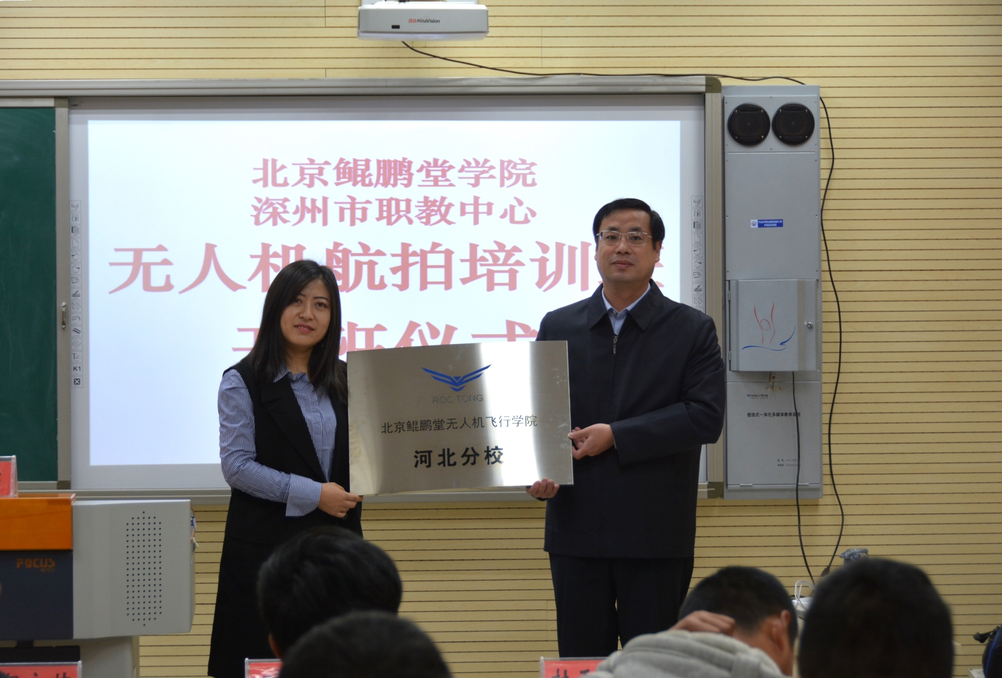 儀式上,賀永帥校長首先對北京鲲鵬堂無人機飛行學院領導的到來表示熱烈歡迎,并要求全體學員遵守學習紀律,嚴格按課程要求專心學習,認真訓練專業技能,選一行、愛一行,幹一行、專一行,努力成為無人機行業的技術精英。之後,王尚坤副總經理代表北京鲲鵬堂科技有限公司為金年会授予“北京鲲鵬堂無人機飛行學院河北分校”牌匾,并介紹了國内無人機的發展形勢及廣闊前景,希望大家共同努力,在無人機行業内争取更好地發展。培訓教師代表趙彤、學員代表李金雷在開班儀式上先後作了表态發言。