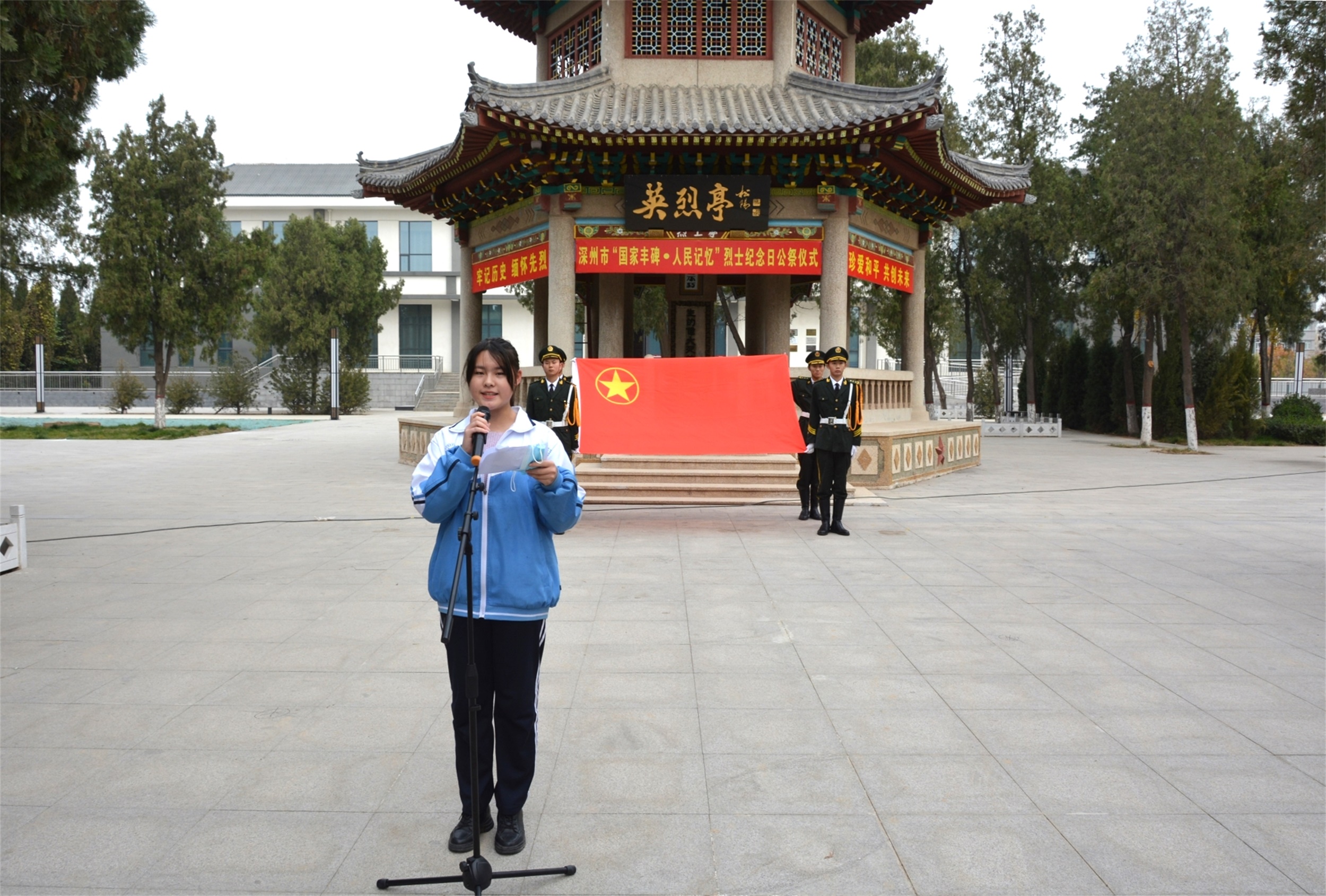 活動中,張愛學校長對同學們提出三點希望:一是緬懷先輩、堅定信念,做弘揚民族精神的傳承人;二是熱愛祖國、珍惜韶華,做具有家國情懷的逐夢人;三是明晰職責、勇擔使命,做建設偉大祖國的先鋒軍。希望全體同學勇擔時代使命、高揚理想風帆,用青春力量建功新時代。王旭書記強調:同學們應當珍惜來之不易的幸福生活,懂得肩負的曆史責任和使命,增強愛國情感、樹立遠大志向、培養良好品德,成為有理想、有道德、有文化、有紀律的社會主義建設者和接班人,為實現中華民族偉大複興貢獻青春力量。